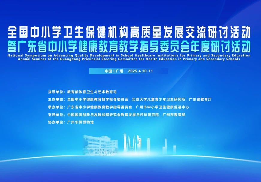 2025年4月10至11日,“全國中小學(xué)衛(wèi)生保健機構(gòu)高質(zhì)量發(fā)展交流研討活動暨廣東省中小學(xué)健康教育教學(xué)指導(dǎo)委員會年度研討活動”在廣州成功舉辦?;顒佑山逃矿w育衛(wèi)生與藝術(shù)教育司指導(dǎo),全國中小學(xué)健康教育教學(xué)